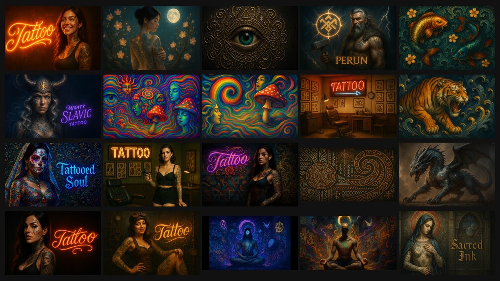 Enter the world where ink becomes art. This exclusive 4K wallpaper pack brings together the best of tattoo-inspired design — from sacred geometry and mythic symbolism to neon-lit portraits of tattooed muses, animals, and legends of the craft. Each wallpaper was crafted to capture the spirit of the tattoo world: bold, emotional, cinematic.